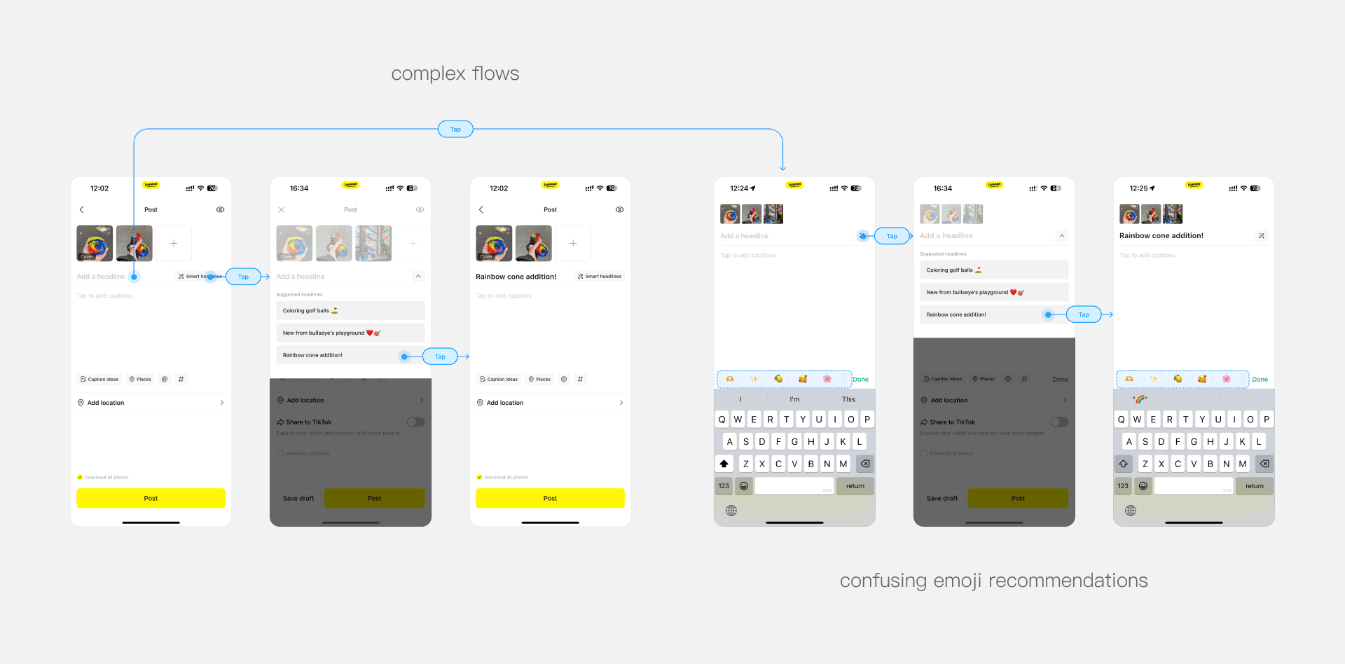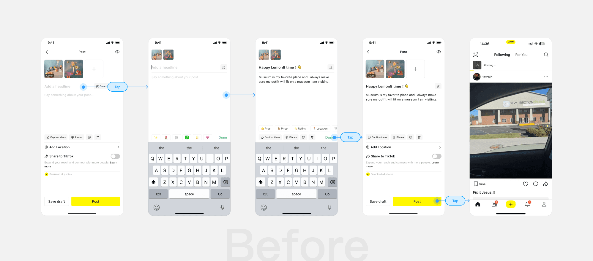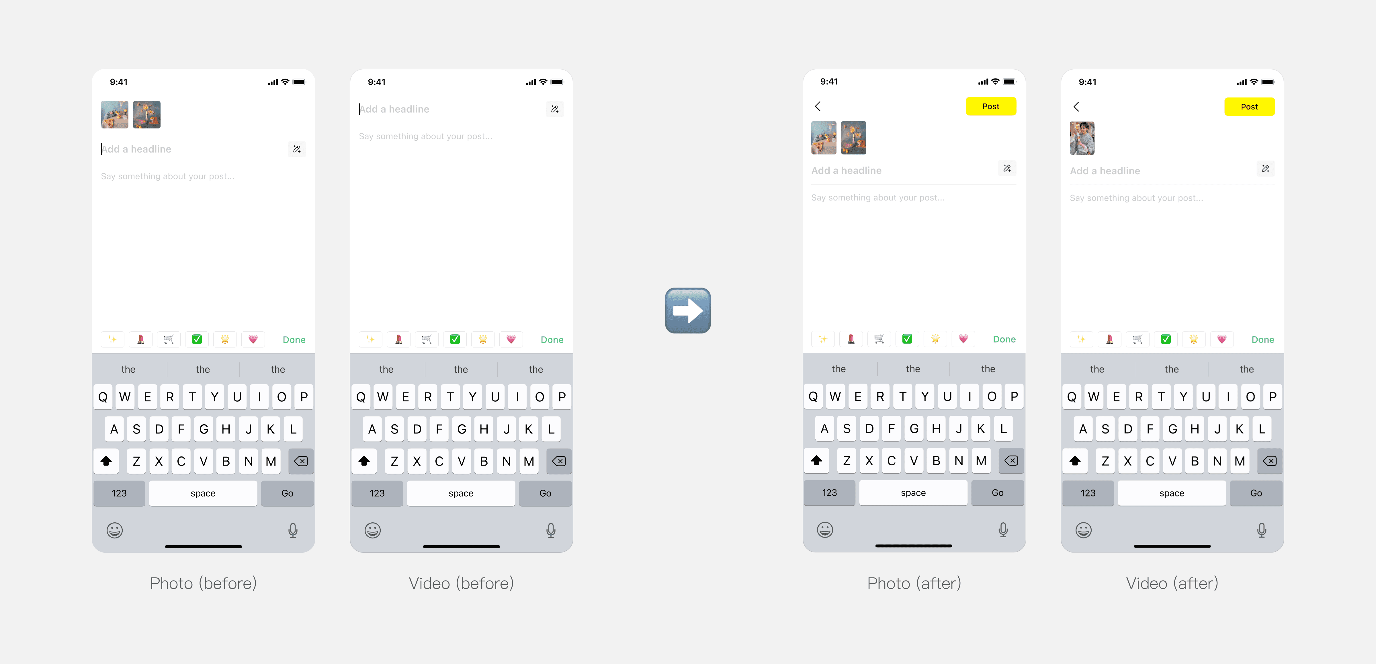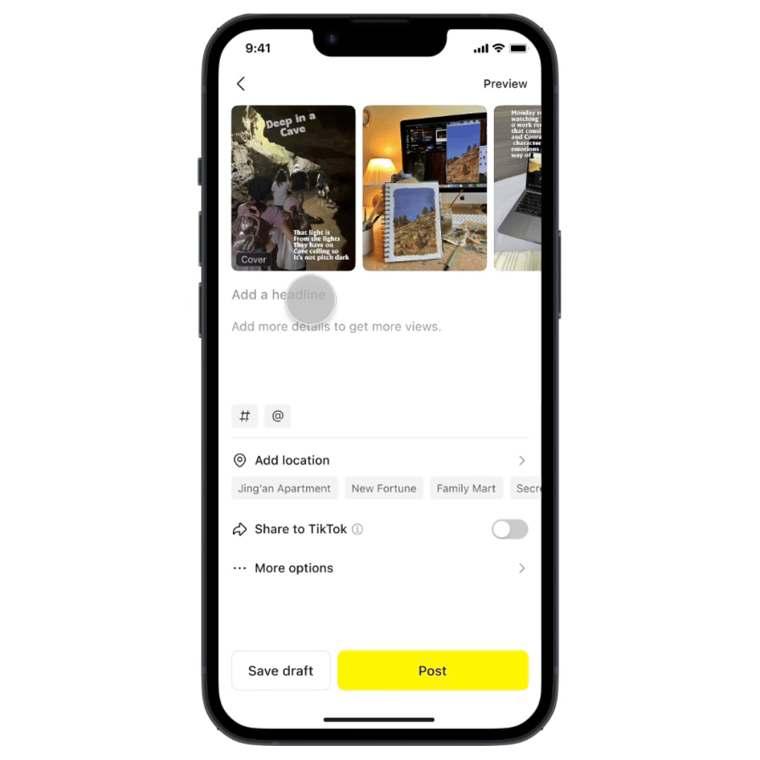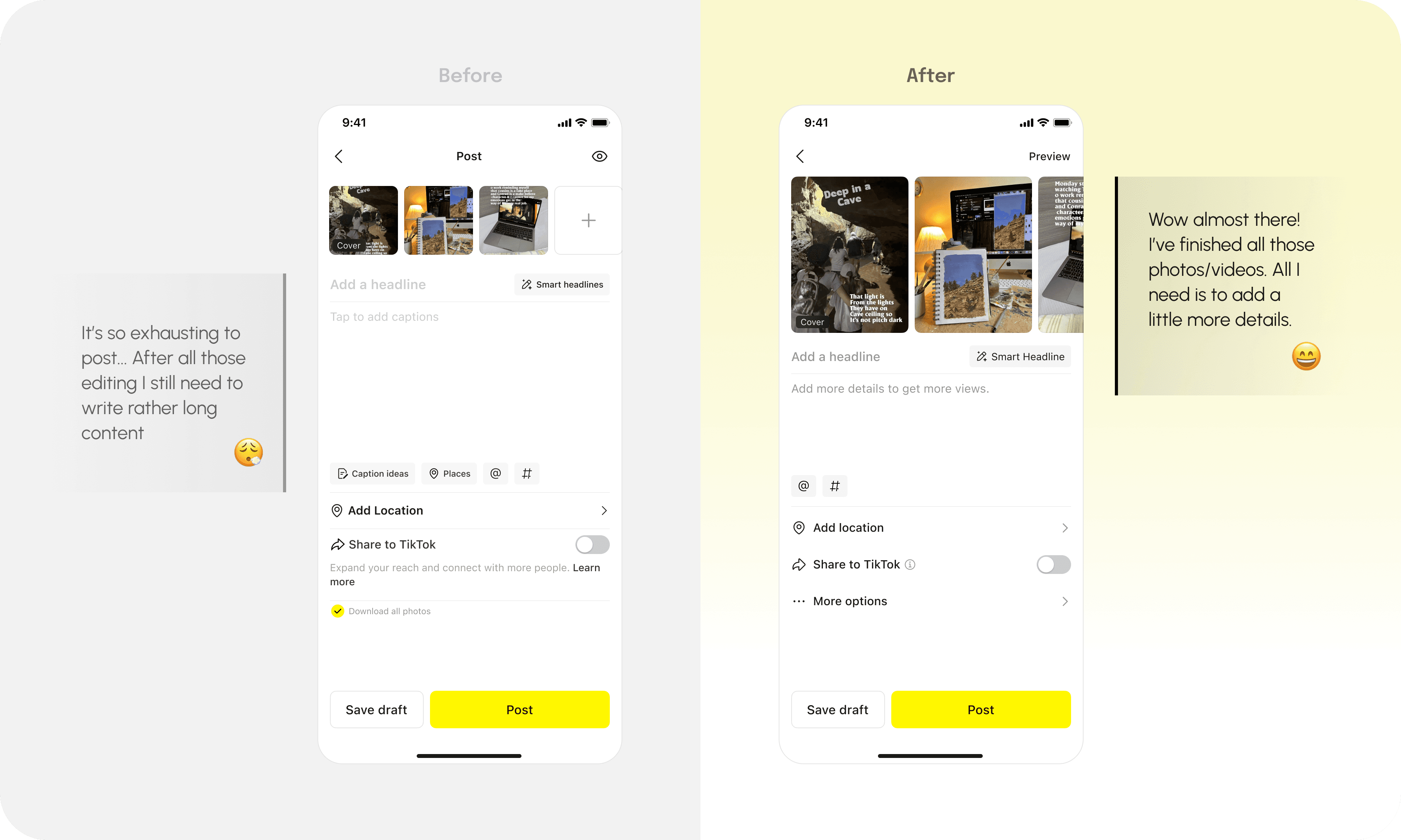 When users finished writing the captions, they must exit the editing mode and return to the post page to complete submission. This extra step breaks the workflow and creates unnecessary friction in the publishing process. Therefore, we added a post CTA in the editing mode, allowing more consistent workflow.