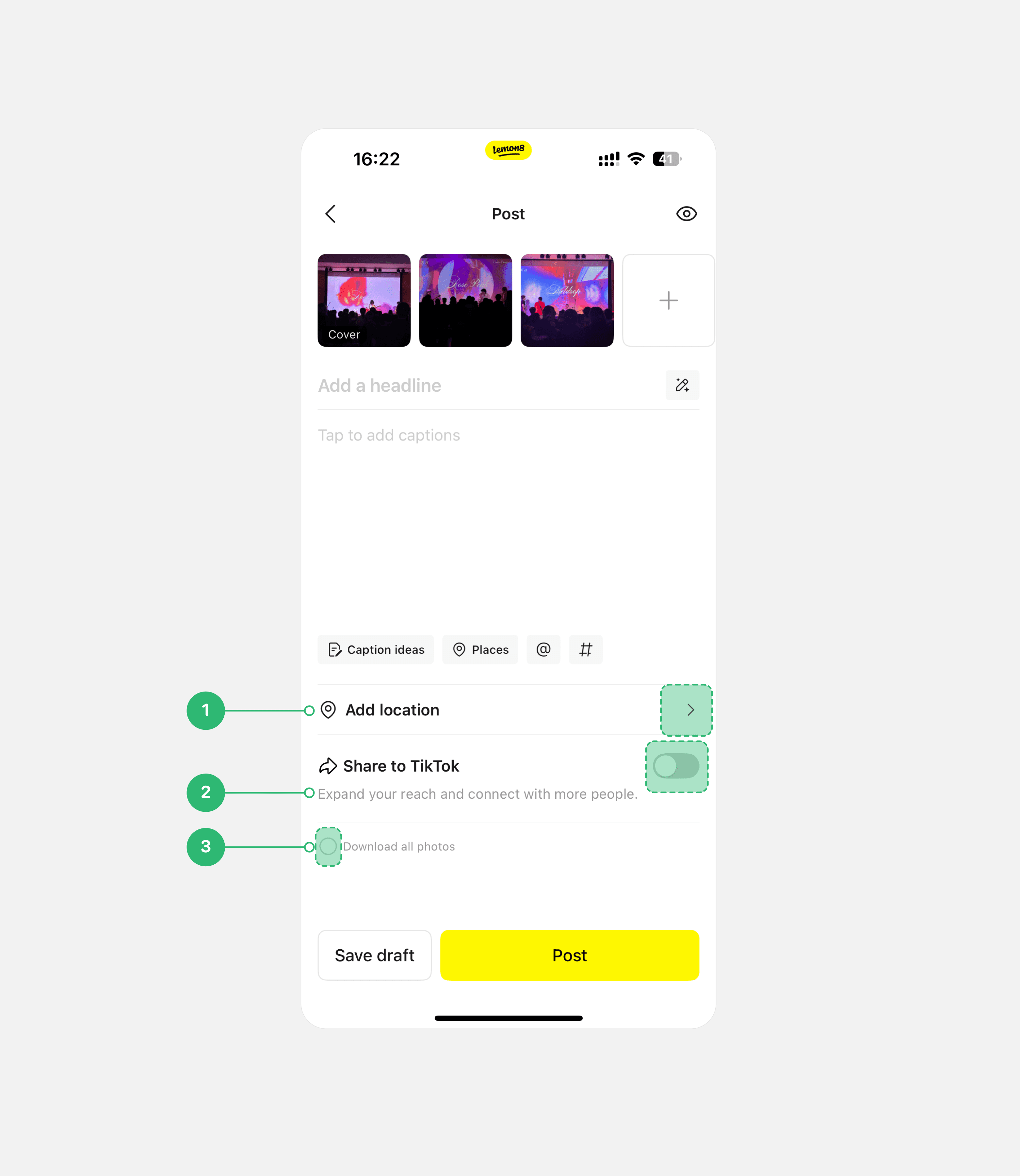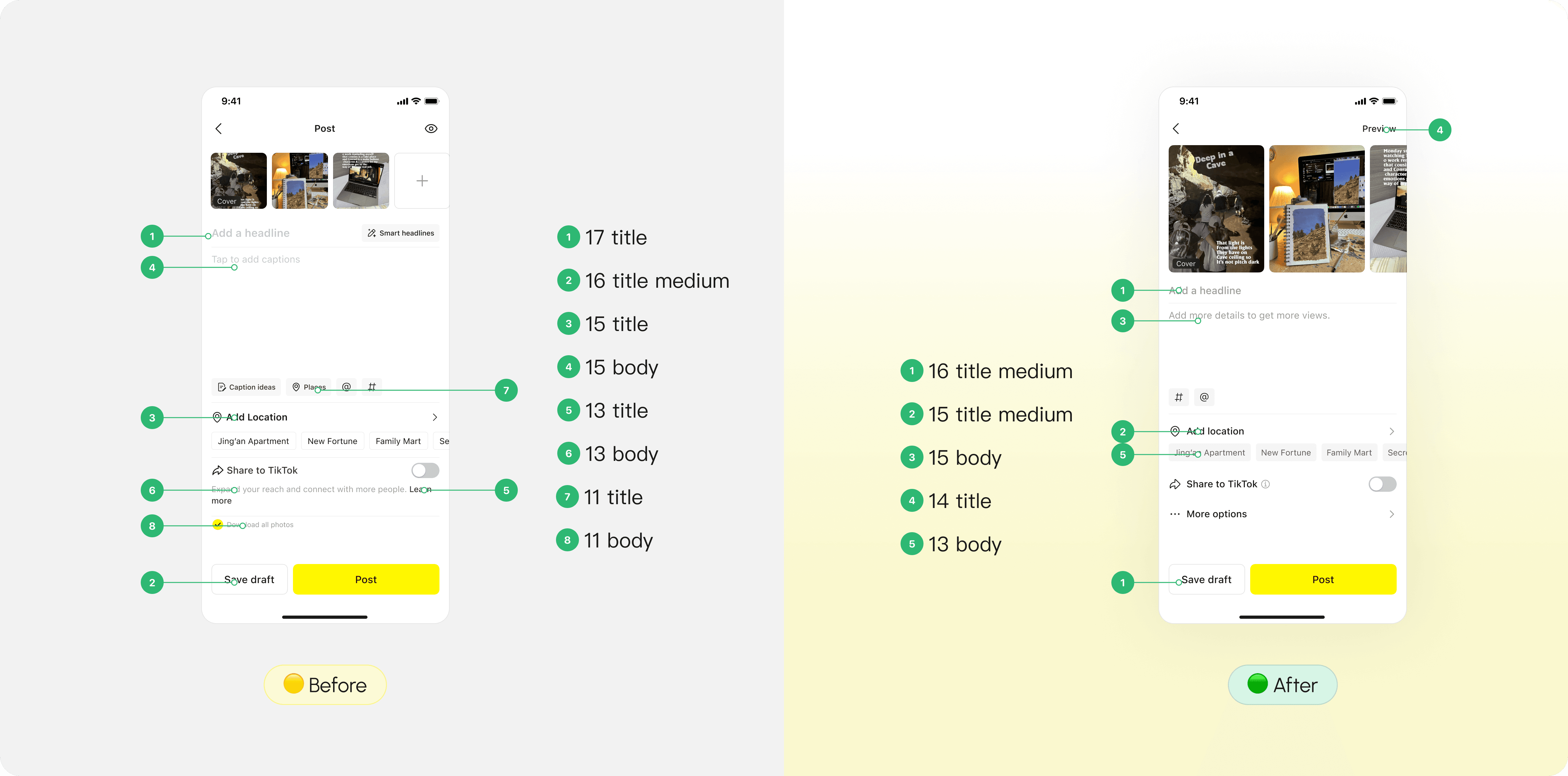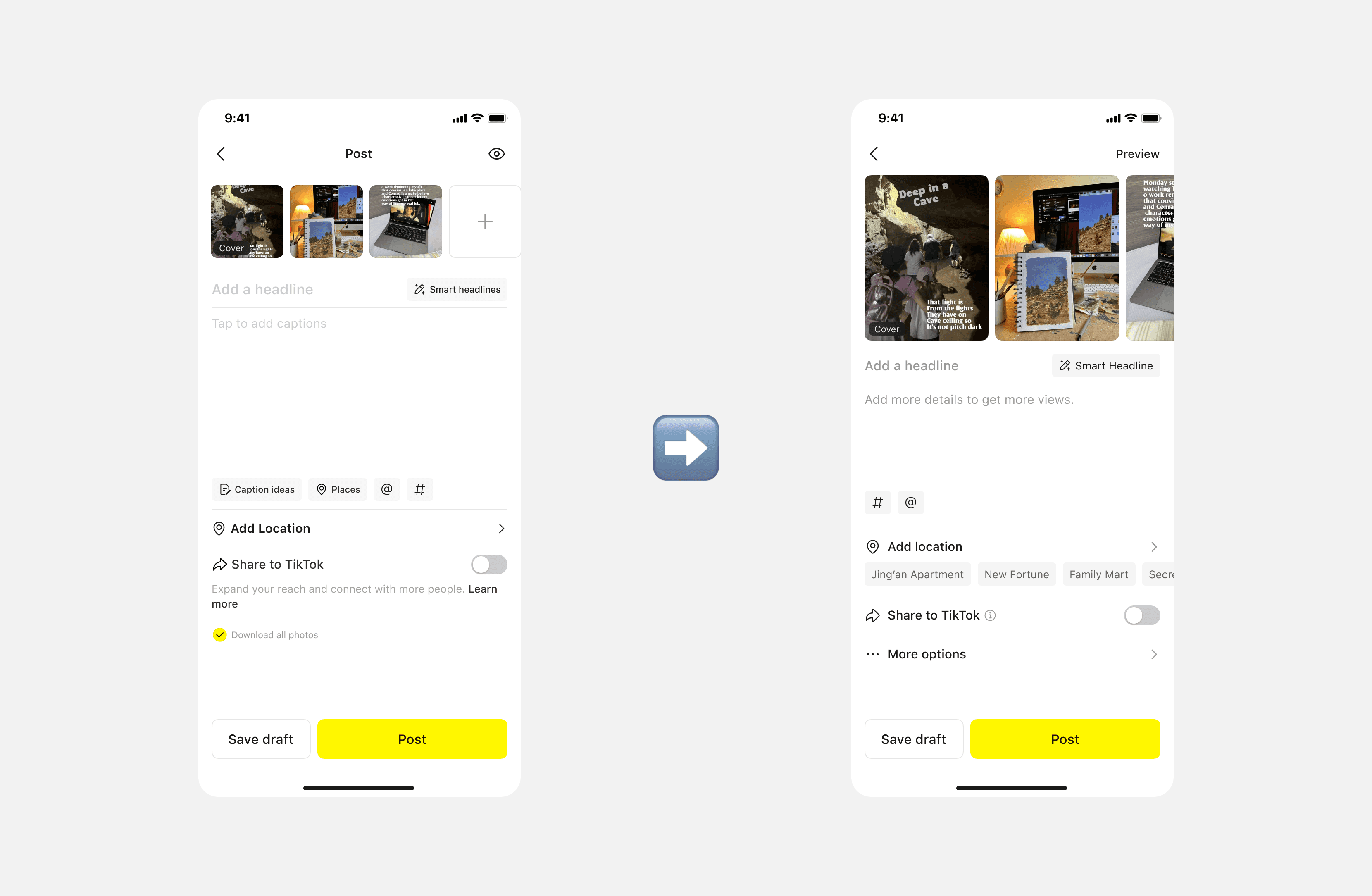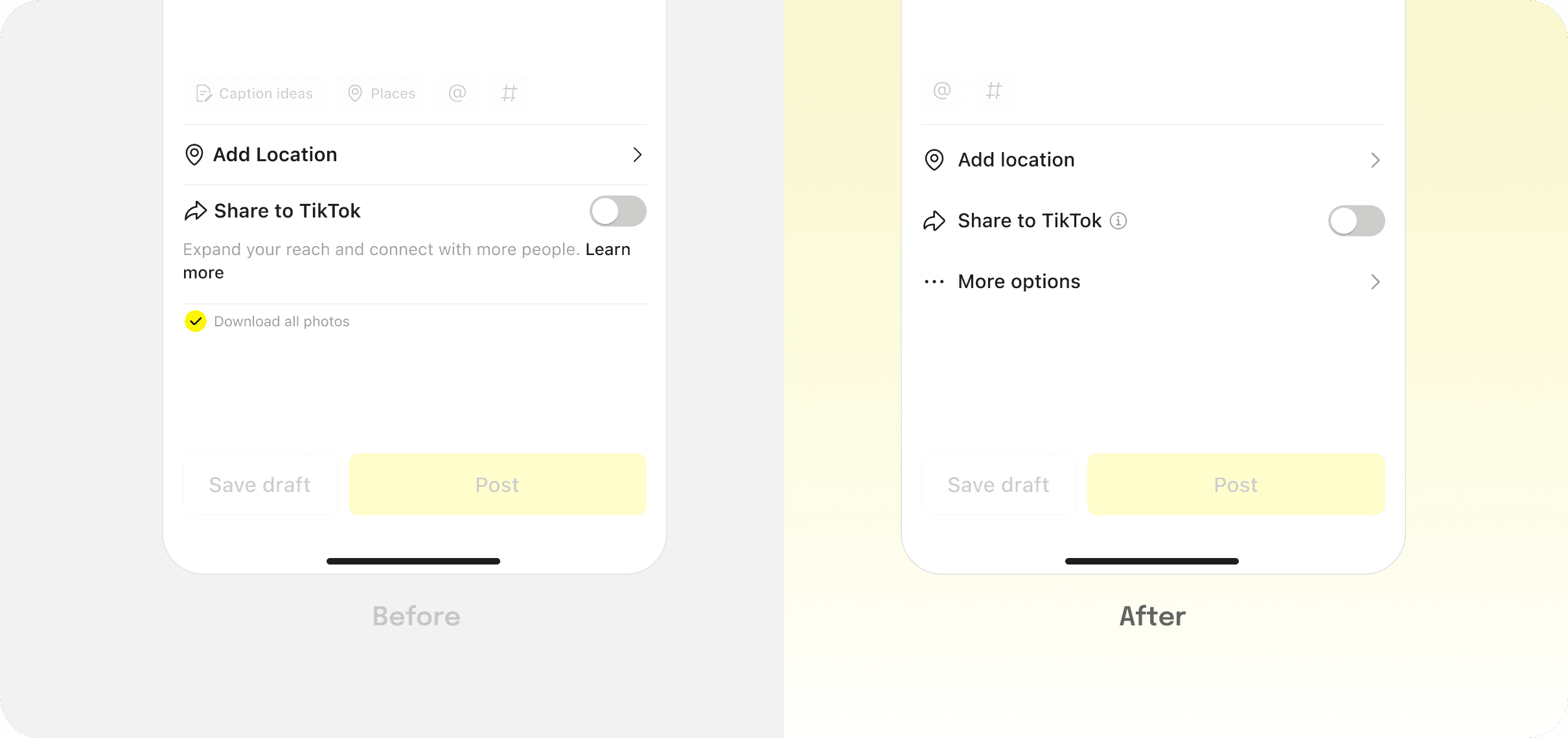 When users finished writing the captions, they must exit the editing mode and return to the post page to complete submission. This extra step breaks the workflow and creates unnecessary friction in the publishing process. Therefore, we added a post CTA in the editing mode, allowing more consistent workflow.