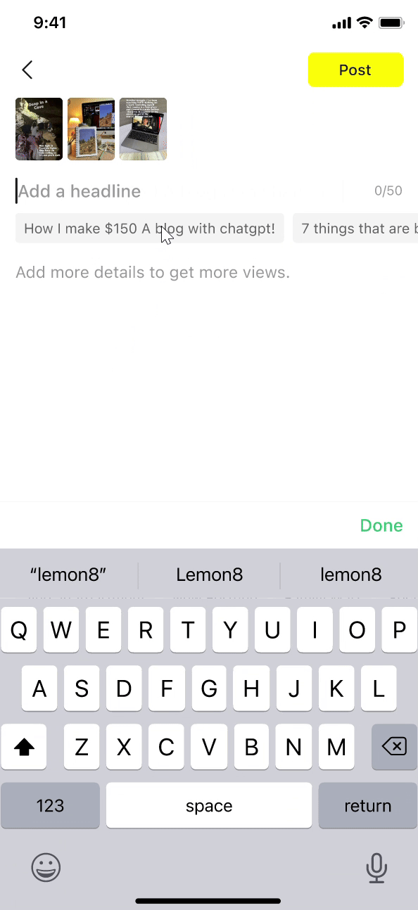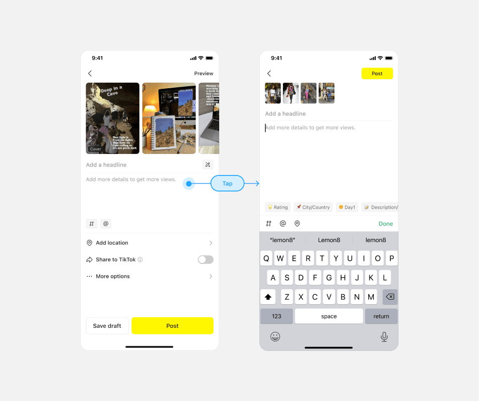 The design was originally intended for encouraging high-quality creators and longer content texts, thus highlighting the text editing area. However, large areas of blank space can apply pressure on general creators that they "need to write a lot of content" to post on Lemon8, thereby affecting their willingness to publish and post conversion rate.