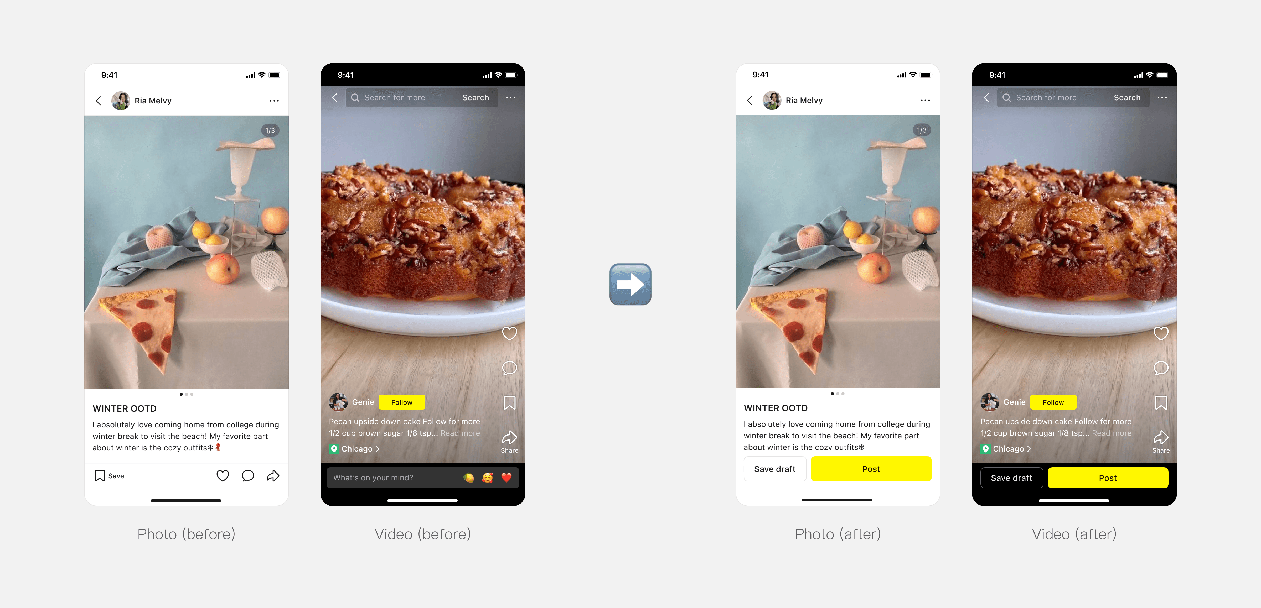We also unified editing mode structure of video and photo posts by adding media preview in video's editing mode, ensuring a more consistent experience.